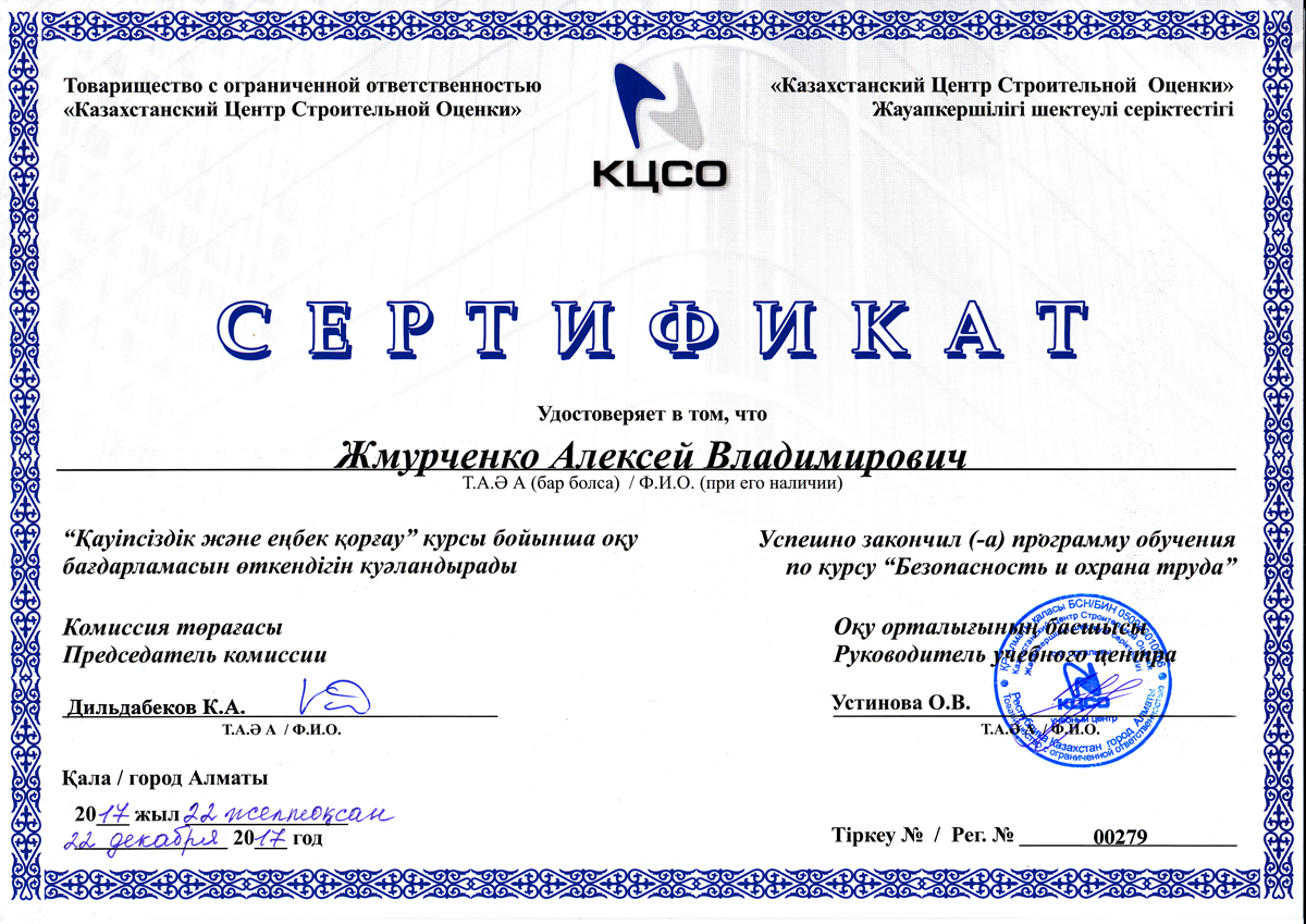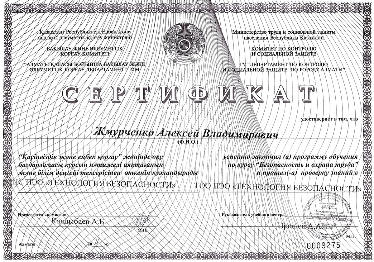 Сертификат «Безопасность и охрана труда»