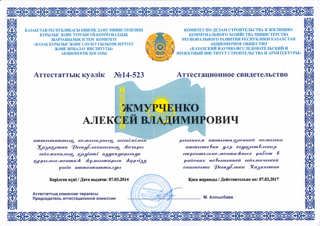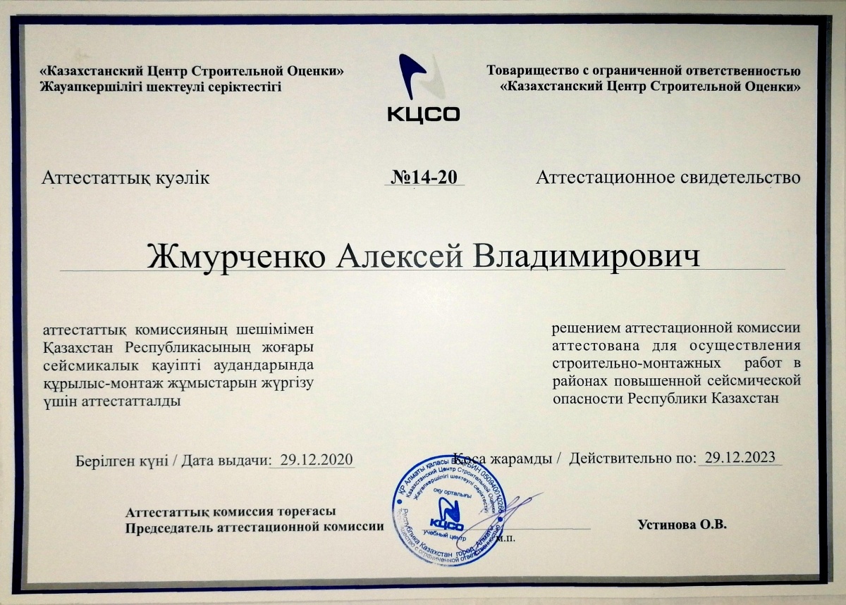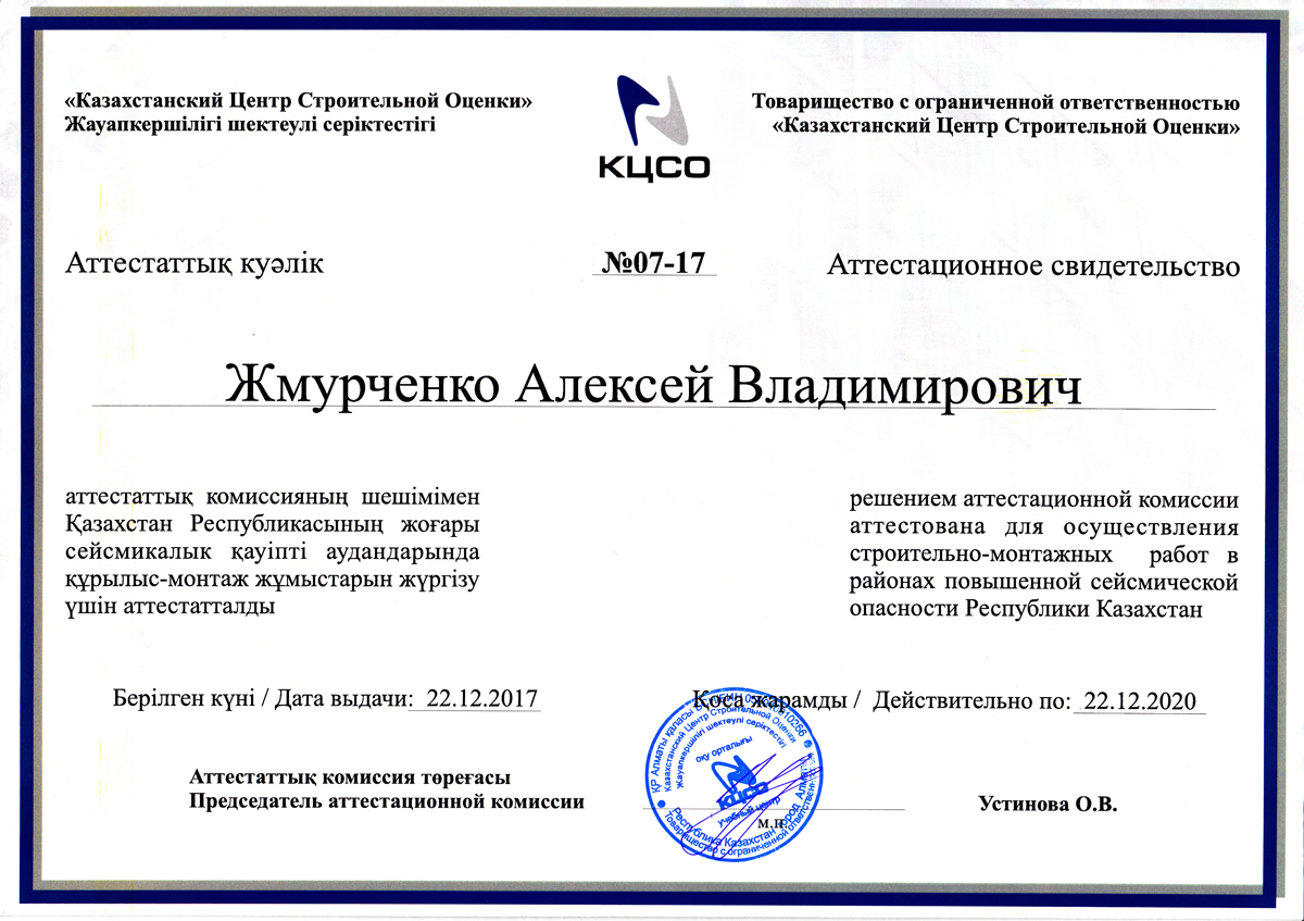 Аттестационное свидетельство (СМР)
