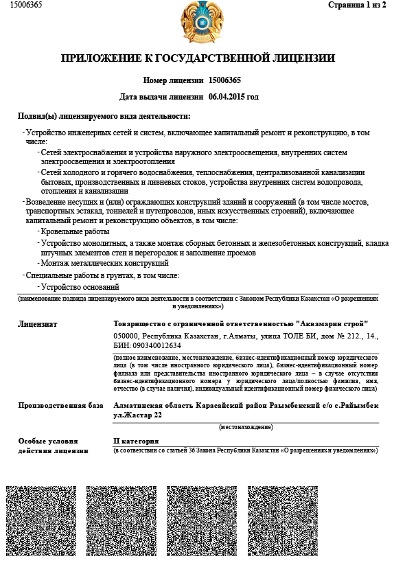 Приложение к гос. лицензии II-категории