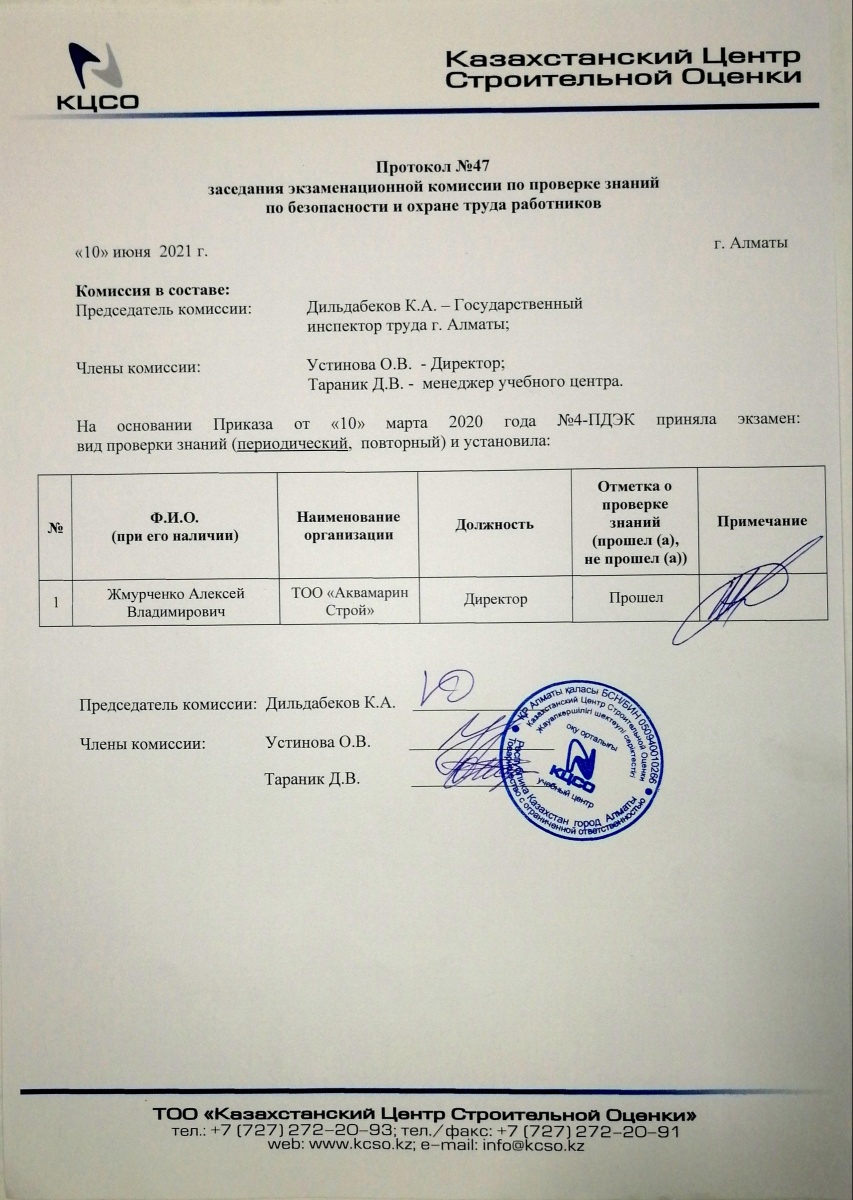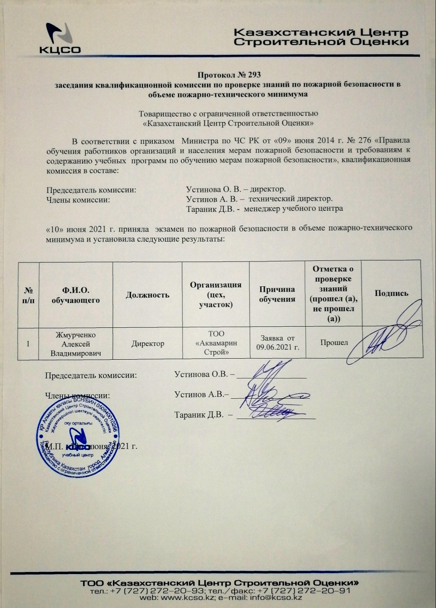 Протокол комиссии по проверке знаний